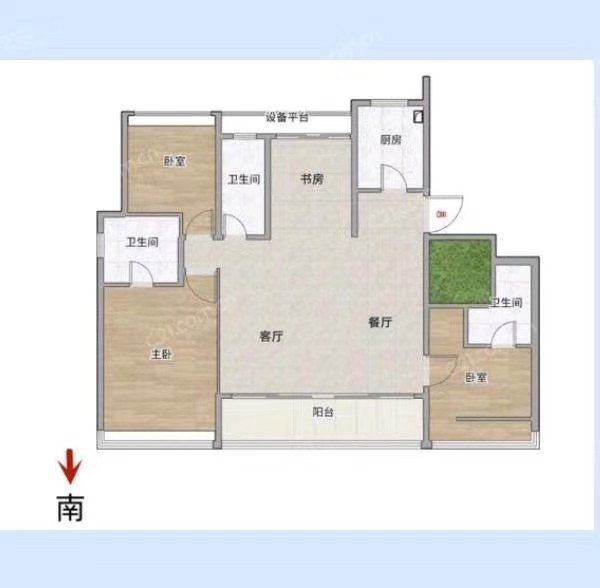 168平米 4房三卫 南侧看中庭 随时看房有钥匙