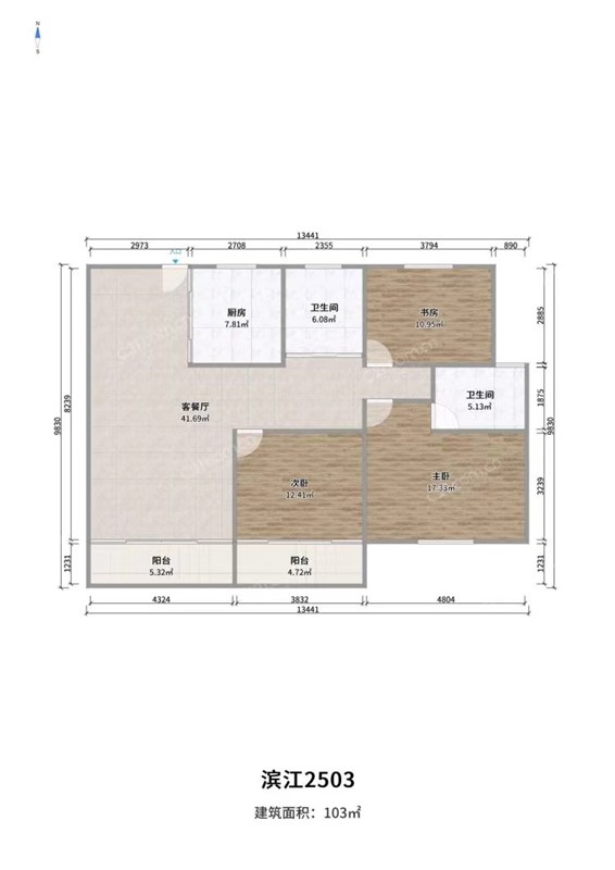 中梁滨江壹号 25楼 103平 308万